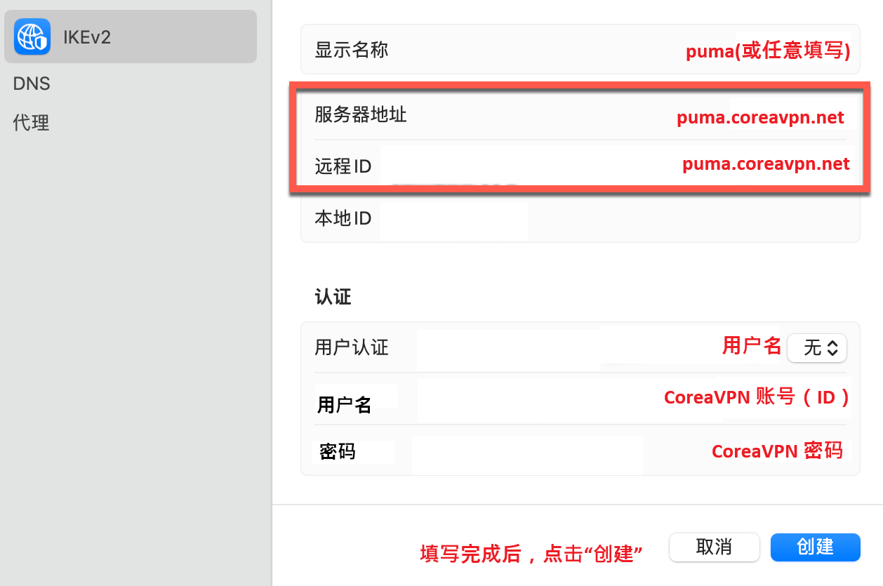 Mac O/S  (Mac, Macbook)  IKEv2  连接方法