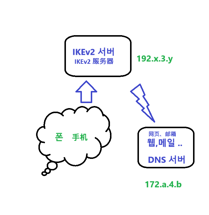 - 在手机上的 IKEv2 VPN 设置中,把 DNS 服务器设置为 172.a.4.b。