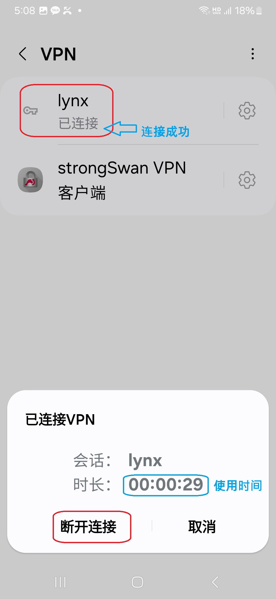 使用 strongSwan 应用方式会更加方便使用。 (如右图)