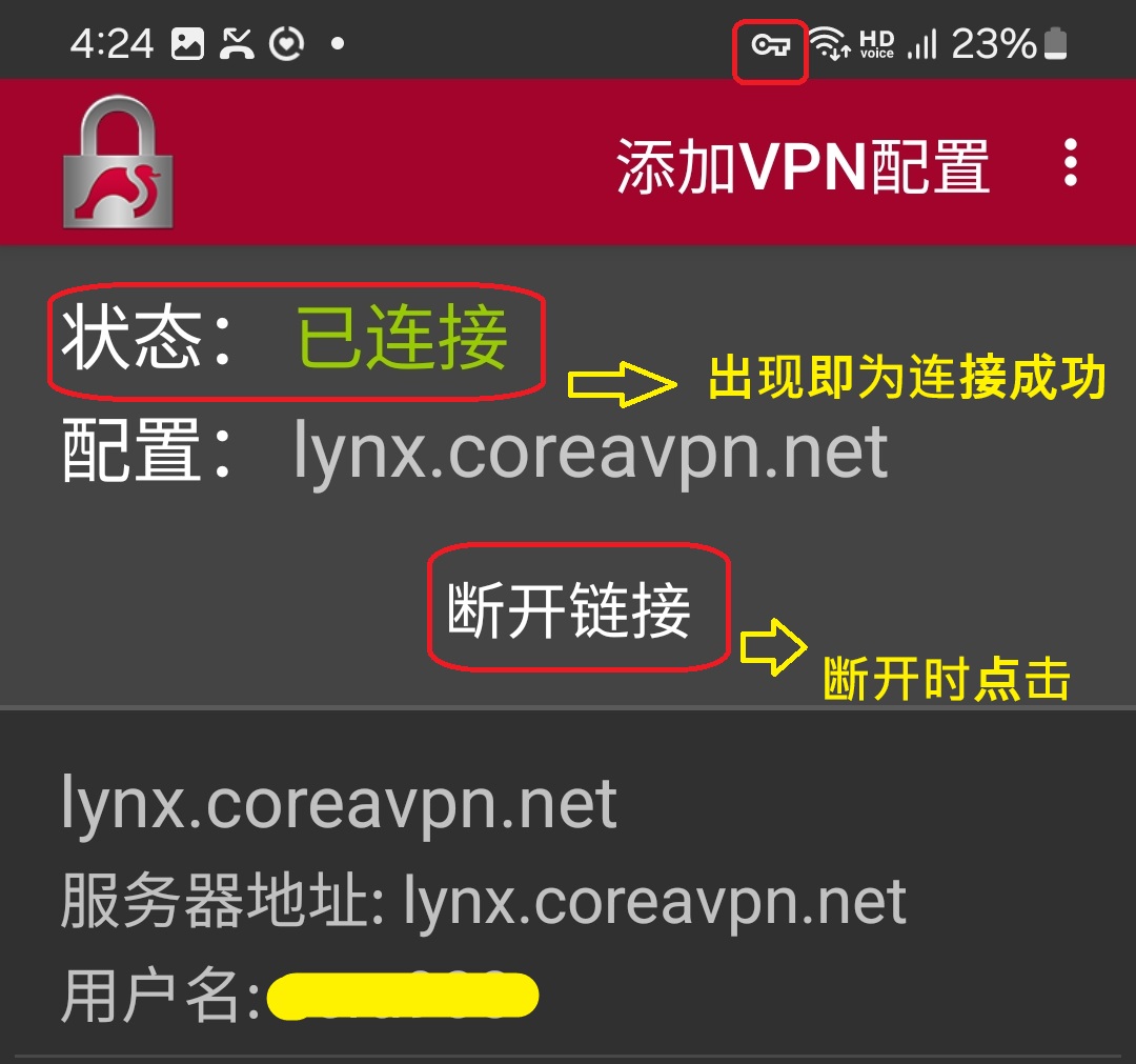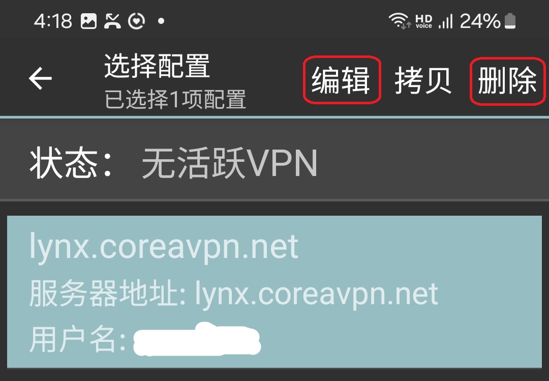 在上方屏幕⑦中,长按“lynx”约3秒,屏幕将出现“Edit”(编辑)。请尝试重新输入您的账号和密码。