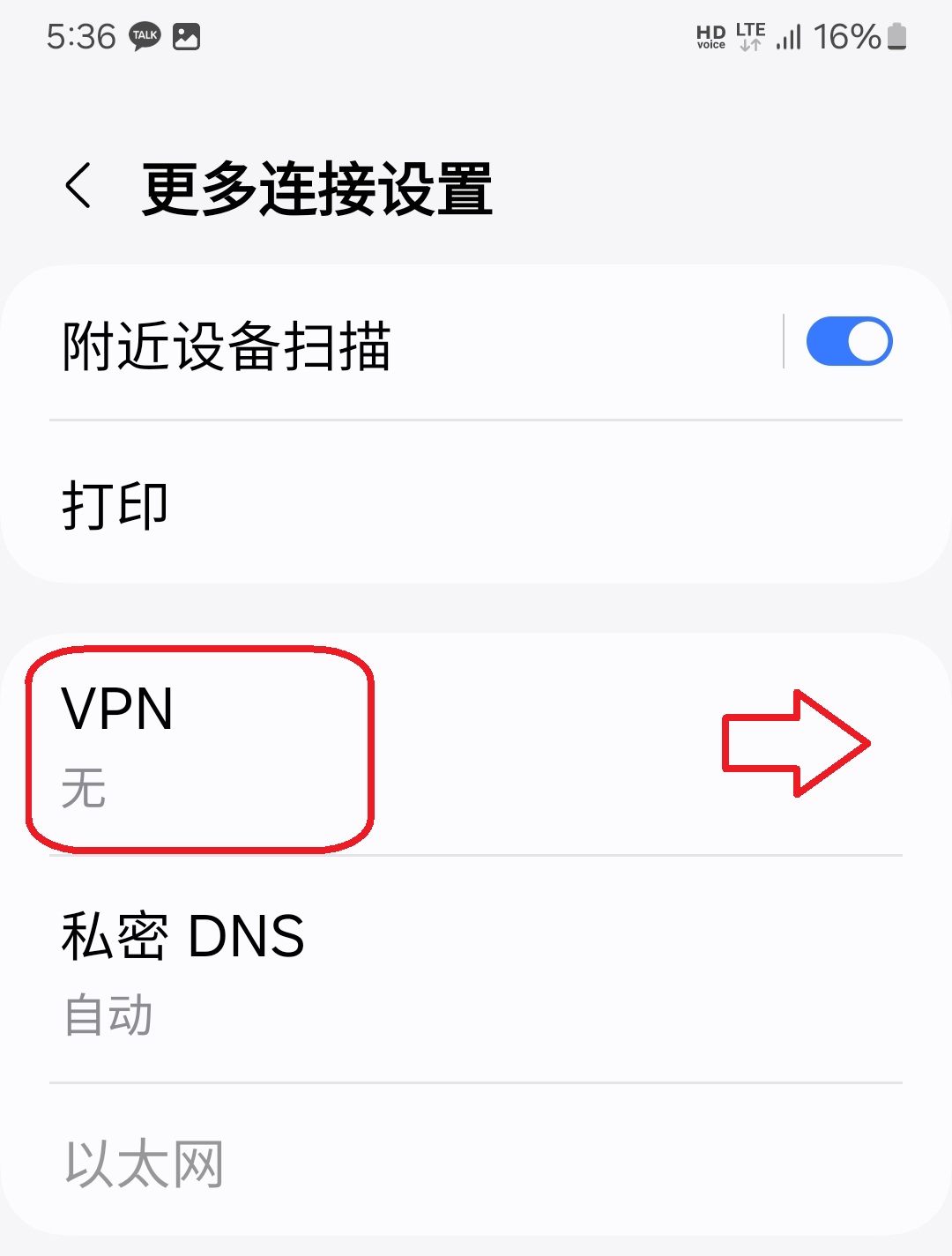 在手机主屏幕上打开“设置”->“连接”->“更多连接设置”,按照下图所示进行设置。