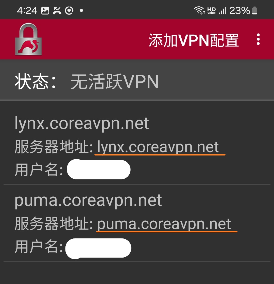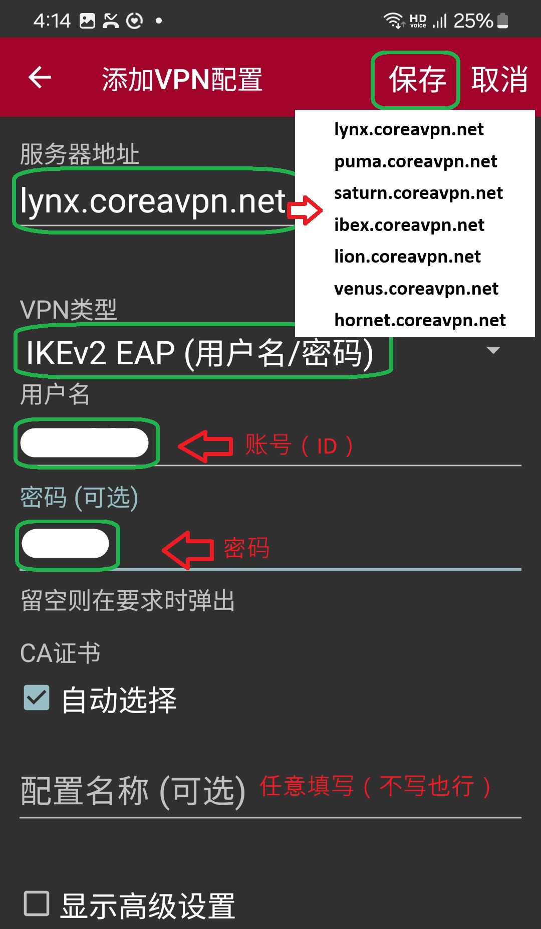 | 3) 用户名 | CoreaVPN账号 (ID)