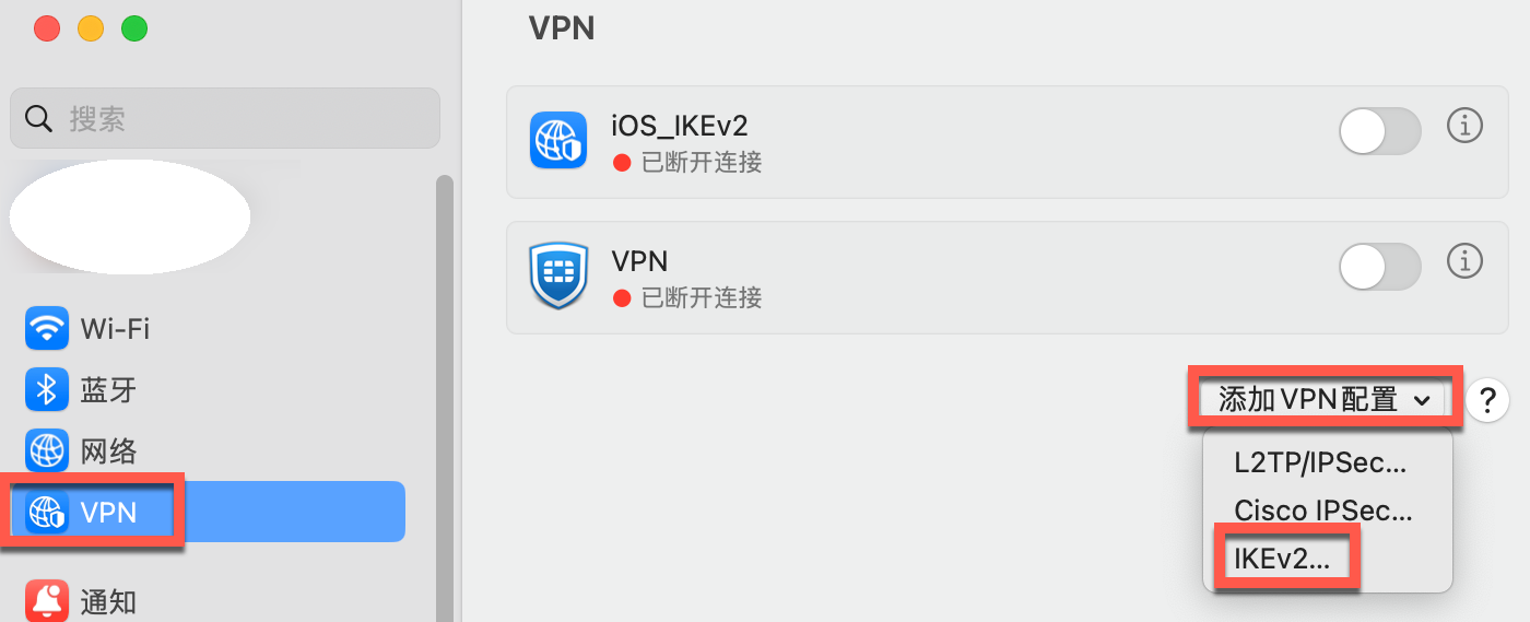 Mac O/S  (Mac, Macbook)  IKEv2  连接方法