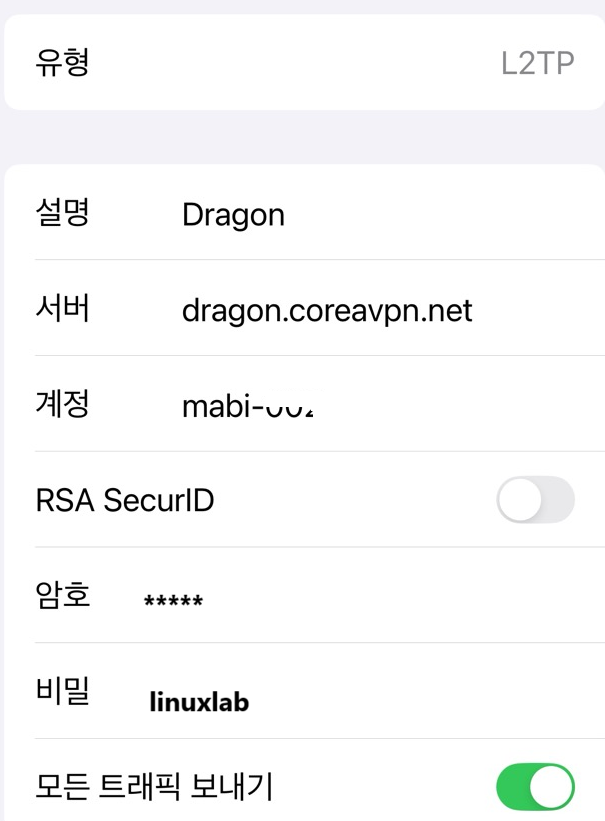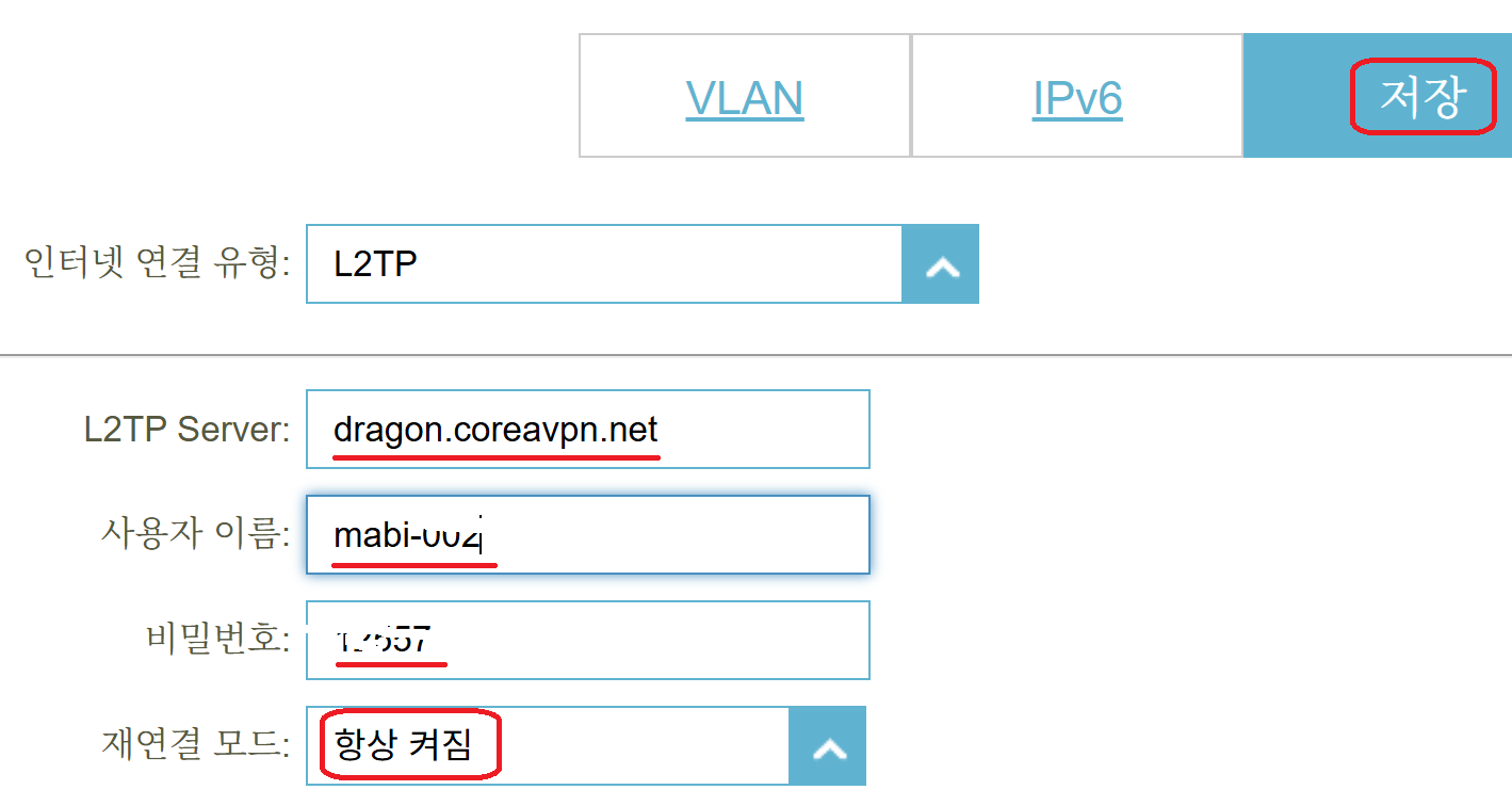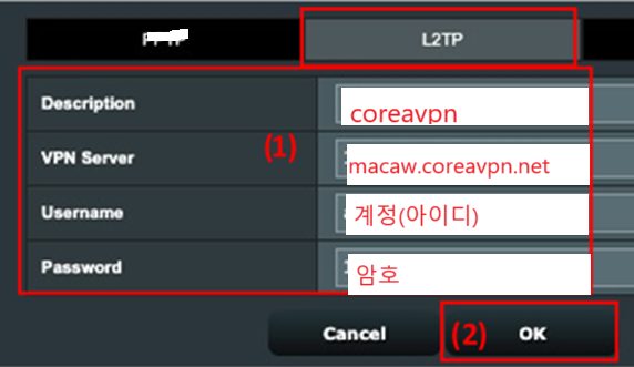 - »ç¿ëÀÚ À̸§ : CoreaVPN L2TP °èÁ¤