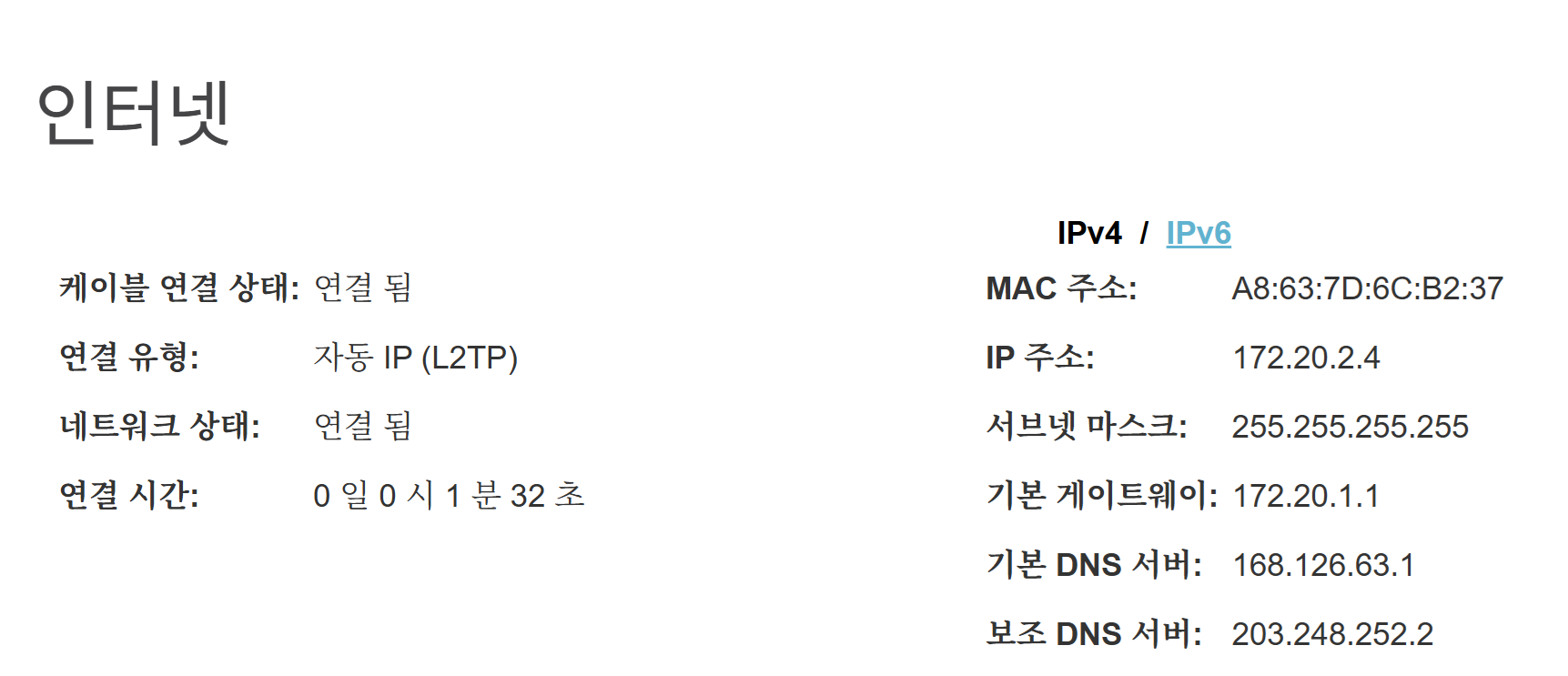 - ±âº» DNS ¼¹ö : 168.126.63.1 (KT)