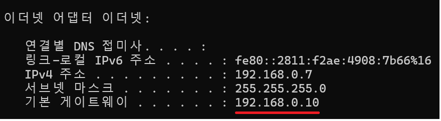 È®½ÇÇÑ ¹æ¹ýÀº ¸í·É¾î ¸ðµå¿¡¼ ipconfig ¸í·ÉÀ» ÁÖ¸é ¿ìÃø ȸéÀÌ ³ª¿È.